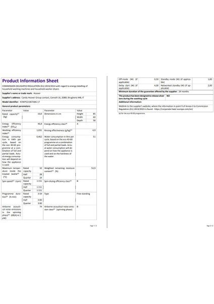 Hoover H3WPS2106TAB6-17 10 kg Wi-Fi Bağlantılı 1200 Devir Çamaşır Makinesi