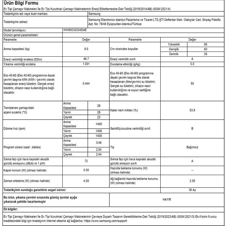 Samsung WW90CGC04DAEAH 9 Kg 1400 devir Çamaşır Makinesi, Dahili Wi-Fi, Eco Bubble Yıkama Teknolojisi