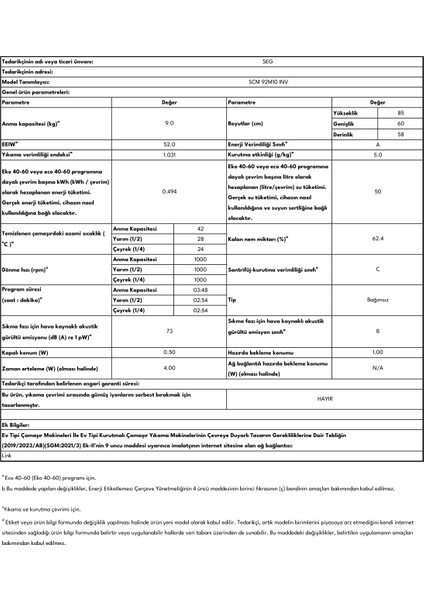 SEG Scm 92M10 Inv Çamaşır Makinesi